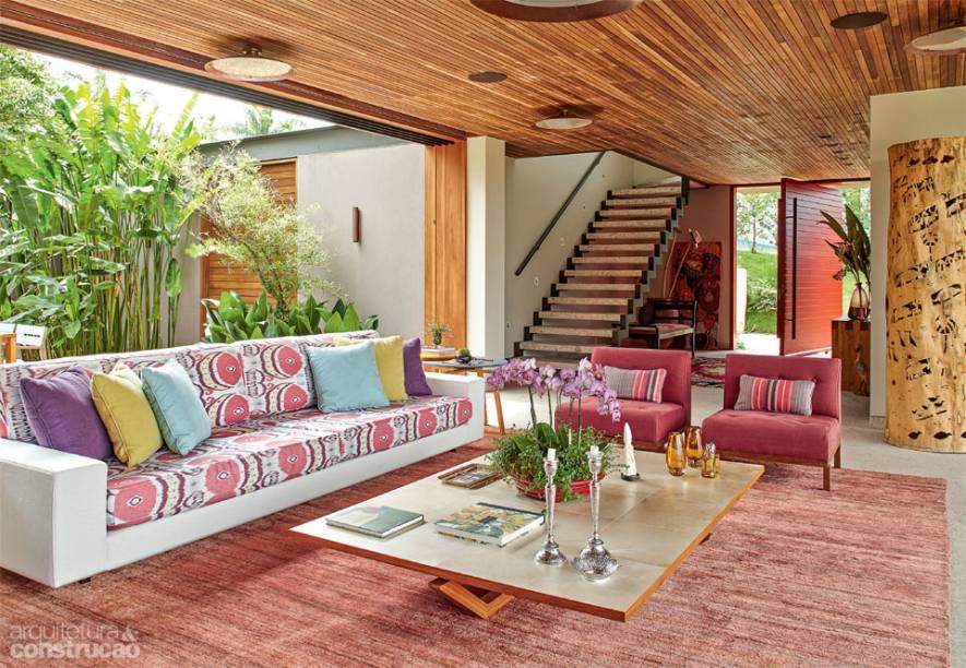 Três blocos dão forma a esta casa de campo no interior de São Paulo. O desenho em L da planta criou uma generosa sala-varanda com integração total ao jardim.