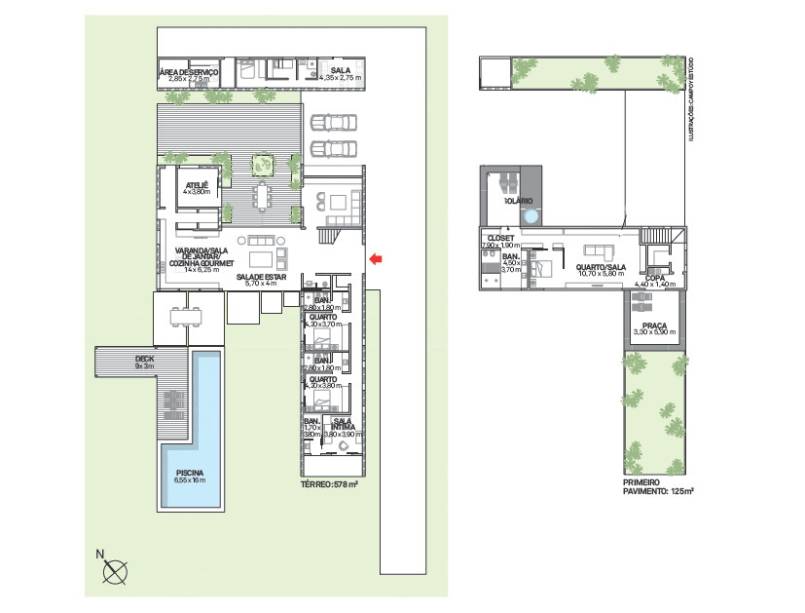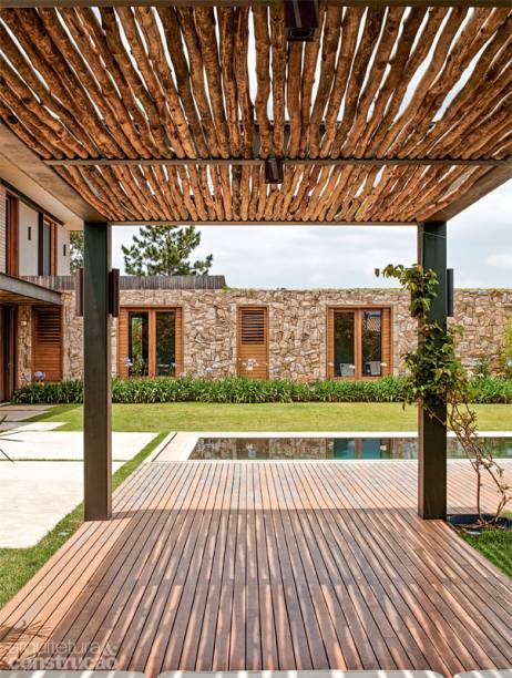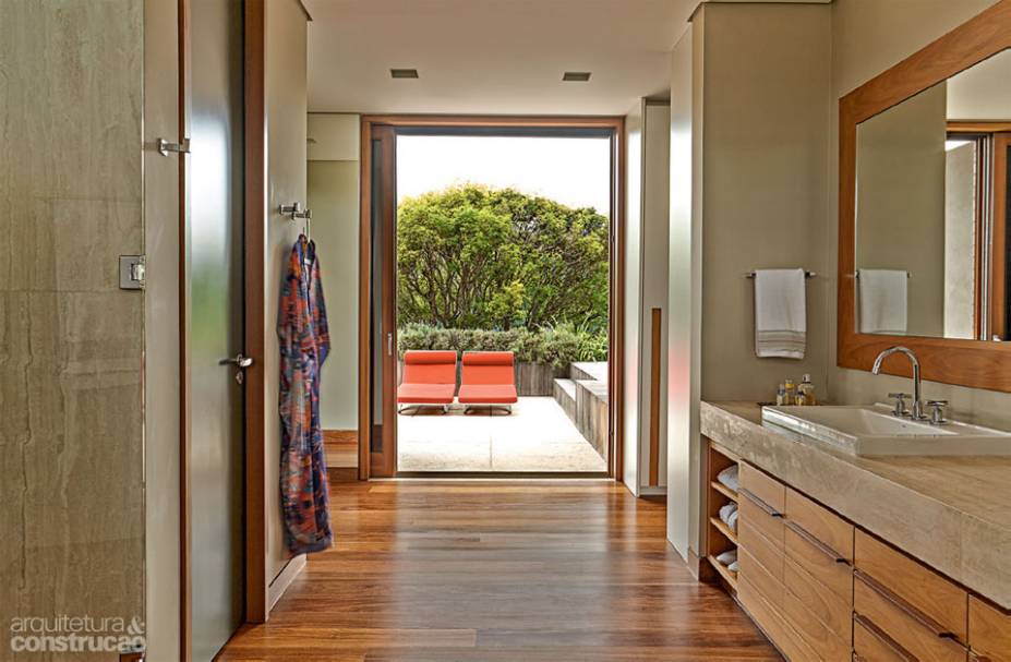 Na primeira vez em que pisou no lote sem os clientes, o arquiteto Miguel Pinto Guimarães sentou-se e mirou. Queria sentir a vocação do terreno, deixar o projeto brotar. Ao pegar sua caneta nanquim e colocar no papel o primeiro esboço do refúgio campestre, as ideias se materializaram num jogo de blocos. Diferentemente do que possa soar, não há acaso na história. A solução traduzida no croqui nasceu do desejo de explorar um elemento clássico de nossa arquitetura: a varanda. Na visão de Miguel, o lugar de calorosas reuniões familiares, presente nas moradias brasileiras desde o período colonial, evoluiu. Sua versão contemporânea é um ambiente que favorece ainda mais o contato com a paisagem ao aliar o jardim da frente ao dos fundos – papel desempenhado, nesta proposta, pela sala. Aqui, a simplicidade das construções rurais cedeu lugar a contornos sofisticados, delineados pela estrutura metálica. Mas não perdeu de vista a busca de brisa fresca, claridade, natureza. “Queria um espaço gostoso, protegido das intempéries”, diz ele. Em prol da beleza e do bem-estar, o arquiteto dispôs estrategicamente dois dos volumes de forma transversal afim de dosar o sol da tarde e os insolentes ventos da região para conquistar ventilação e insolação adequadas. Com esse arranjo, concebeu uma área exclusiva para o casal de empresários no primeiro pavimento: espécie de apartamento privativo, equipado com sala e copa, além da suíte e da deliciosa praça gramada, onde a dupla desfruta de todo o sossego do mundo, mesmo quando a morada está com a família completa. Nesta releitura, tão importante como o encontro é o recolhimento.