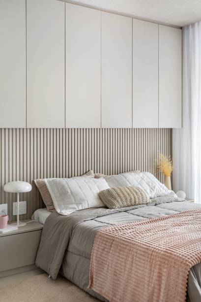 Japandi: apê de 110 m² tem décor delicado em tons de branco, rosa e cinza