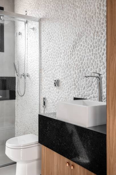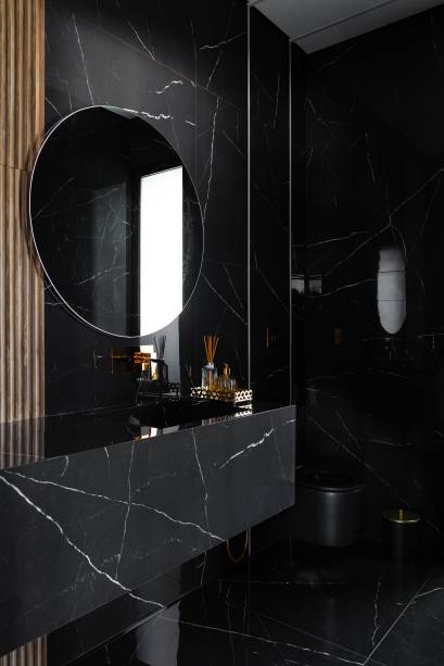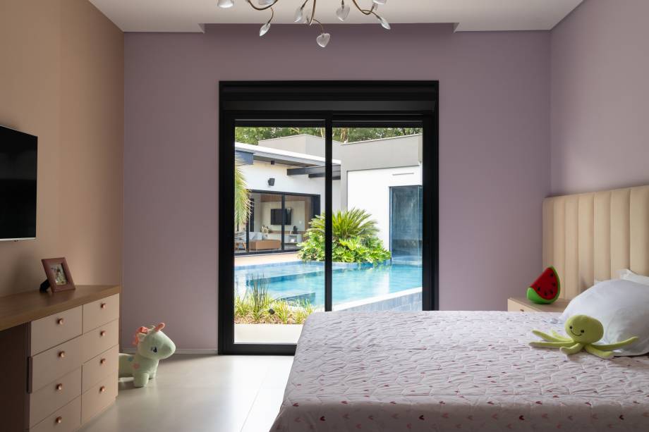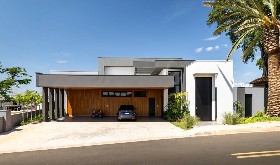 Diante dessa peculiaridade, Natália propôs um projeto arquitetônico que “abraçasse” a área de lazer da residência, aproveitando ao máximo as características do terreno. O resultado foi uma casa térrea de 759,20 m², com um programa funcional que atende às necessidades do dia a dia do casal, ao mesmo tempo em que oferece diversas áreas de lazer para receber amigos e familiares com conforto e sofisticação.