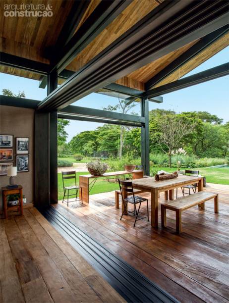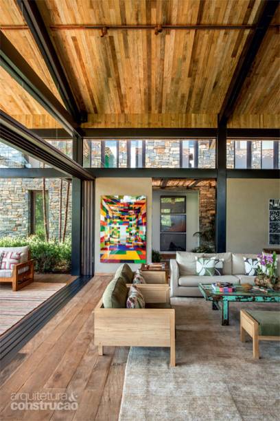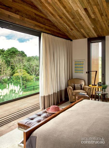 Madeira no piso e no teto traz acolhimento à vivendo de campo