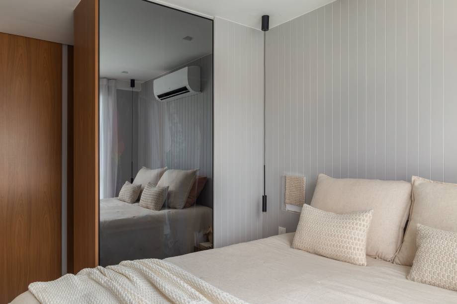 “Os clientes pediram uma reforma completa do imóvel recém entregue pela construtora, não só para adaptar todos os cômodos às necessidades da família, incluindo a mãe da moradora, que mora com eles. E também para que o novo lar refletisse a personalidade e o gosto deles, que já se identificavam com a minha linguagem de trabalho”, conta o arquiteto Rafael Ramos, que assina o projeto.