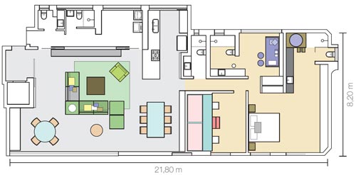“Decorar começa por um estudo de comportamento”, diz o designer Marcelo Rosenbaum, contratado para reformular os ambientes. “Neste caso, me peguei pensando: quem é esse novo solteiro? O que ele quer? Liberdade e coisas com o seu jeito.” Inspirado pelo momento que vivia o cliente, o designer buscou em seu repertório o que poderia combinar com o morador ” um apreciador de vinhos, charutos e jogos de cartas, que desejava assistir a filmes em equipamentos de última geração e receber os filhos com conforto. “Tudo isso inserido em um estilo sofisticado e jovem ao mesmo tempo”, conta Rosenbaum. A tradução desse conceito são móveis de tons sóbrios combinados a peças coloridas e ao artesanato brasileiro. Quer conhecer mais sobre o trabalho de Marcelo Rosenbaum? Então conheça sua última linha de móveis.