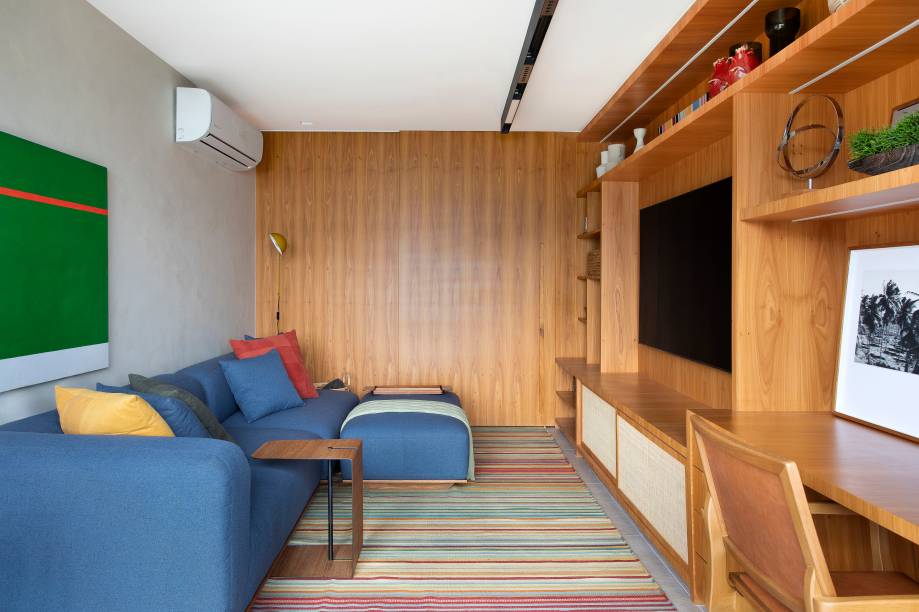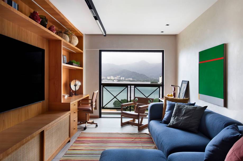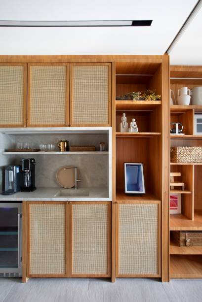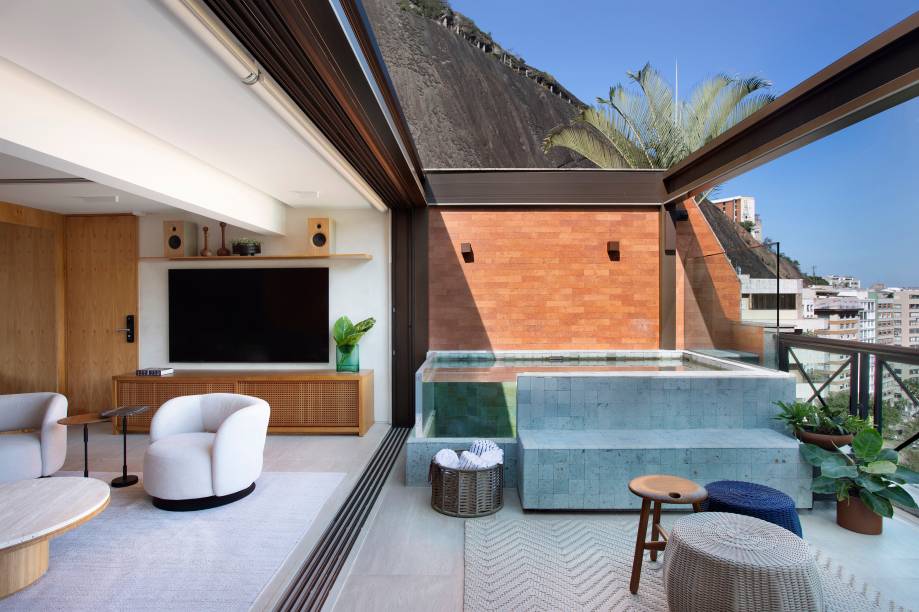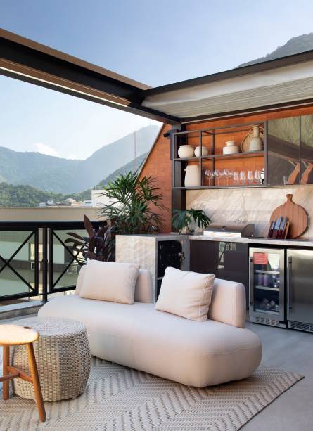 “Quando abrimos as portas de correr que separam o terraço da sala de estar temos a sensação de um ambiente único e mais amplo, trazendo ainda a paisagem externa para dentro do apartamento”, conclui a arquiteta Camila Simbalista, do Studio 021 Arquitetura.