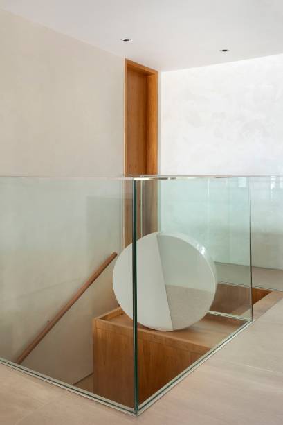 Camila Simbalista e Paula Wetzel, do Studio 021 Arquitetura optaram por um piso de porcelanato, em tom areia com superfície texturizada, nos dois andares.