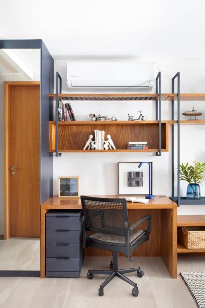 No geral, o conceito do projeto buscou criar espaços com uma cara mais “masculina”, sem que o resultado final ficasse caricato ou exagerado, e a seleção de móveis priorizou criações brasileiras de design assinado.