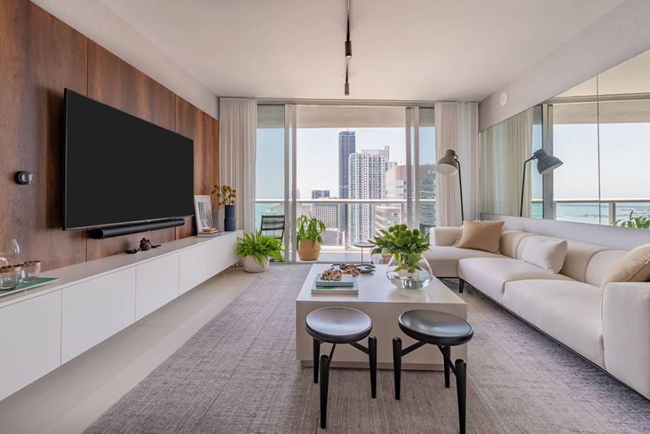 Com vista para Miami Beach, este apê de 135 m² é um oásis urbano