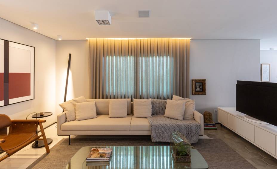 Ao todo, com 310 m², a casa teve seus interiores todos repaginados para receber os moradores. O convívio familiar foi o principal pedido deles aos arquitetos, que trataram de abrir os ambientes e integrá-los com a área externa. Antes, o quintal era pouco usado e na nova versão do imóvel, o espaço ganhou importância.