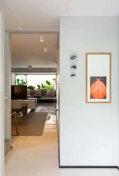 Análise do baguá e Feng Shui norteiam o projeto desta cobertura na Vila Mariana Neste apê, estante metálica branca é divisória e floreira para jiboias e costelas-de-adão