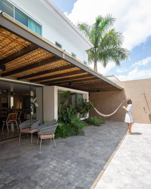 Localizada em um condomínio de poucas residências, em Feira de Santana, Bahia, esta casa tem uma atmosfera de refúgio. Isso porque ela fica em uma rua arborizada e silenciosa, por ser afastada das vias mais movimentadas da cidade. E foi esse clima que os arquitetos Filippo Rota e Kyze Vasconcelos, do escritório Studio Kyze Arquitetura e Design, reforçaram no projeto de reforma.