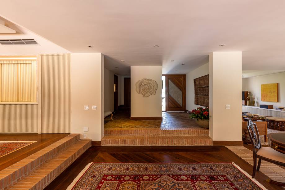 O casal na faixa dos 60 anos já estava junto há duas décadas quando resolveu morar junto, em plena época de pandemia. A casa de 510 m², no entanto, cujo projeto original de 1984 é assinado pelo arquiteto Ricardo Ramezoni, precisava ser modernizada. “O mais importante era atualizar o layout e dar espaço às novas memórias do casal, com respeito e carinho às antigas memórias da residência”, conta a arquiteta Marina Mello, do escritório Terça Arquitetura, responsável pela repaginação.