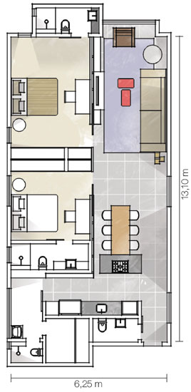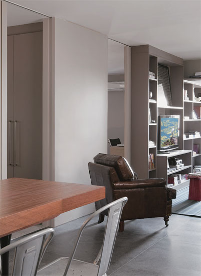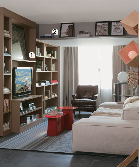 Estudante de arquitetura, o morador, Felipe Xavier Bastos, teve o privilégio de participar do trabalho do tio, o arquiteto David Bastos, na reforma do apartamento em que viveria com o irmão em São Paulo. Com menos de 23 anos de idade, eles adoram receber para jantares. Com a integração proposta por David Bastos, a ala social ficou maior e mais convidativa, seja para reuniões com amigos, seja para assistir a filmes com estilo. Os dois quartos também lucraram ao ganhar a área obtida com a eliminação de um hall íntimo. Outra medida inteligente: voltadas para a sala, as portas dos dormitórios cederam espaço extra, solução que permitiu instalar mais um armário em cada cômodo. Tudo isso soma conforto à decoração, e elementos como cortinas e paredes de tons de fendi e marrom reforçam o acolhimento presente em todo o apartamento. Confira também um projeto de 42 m² e um de 44 m².