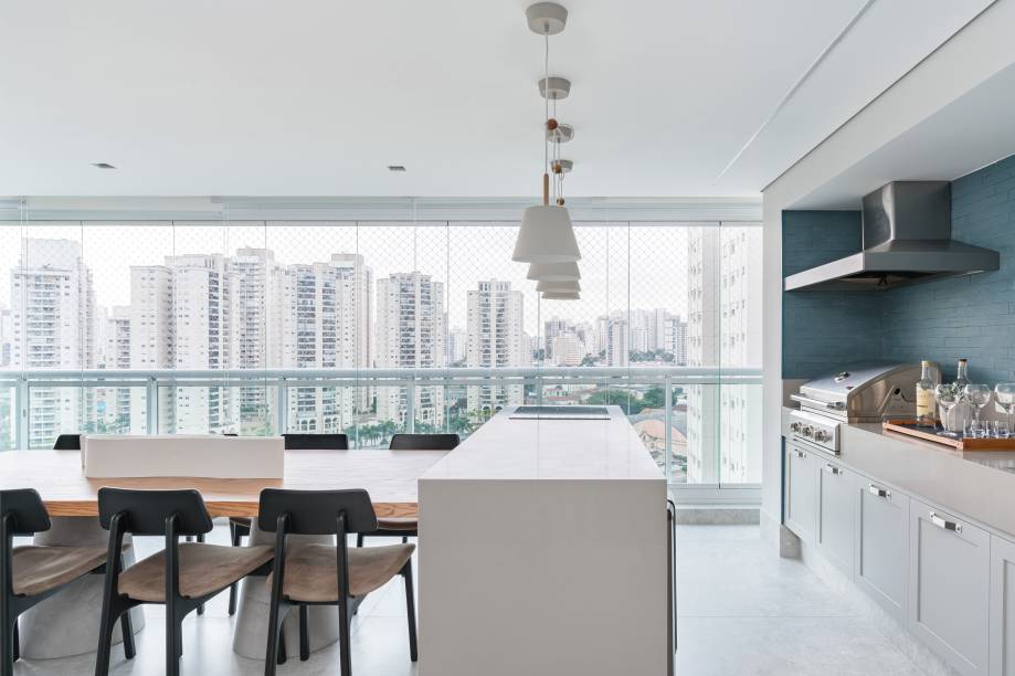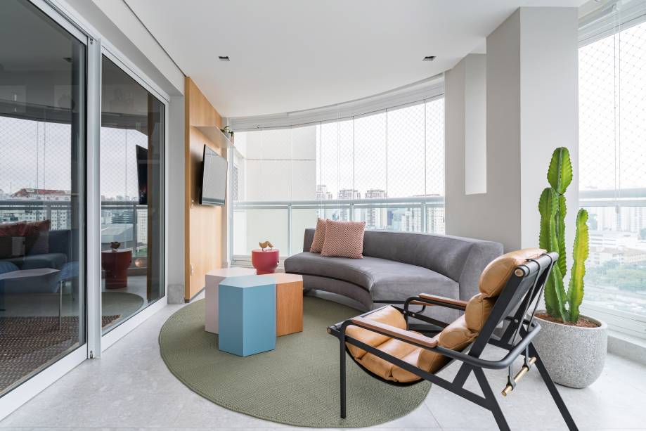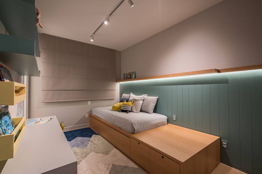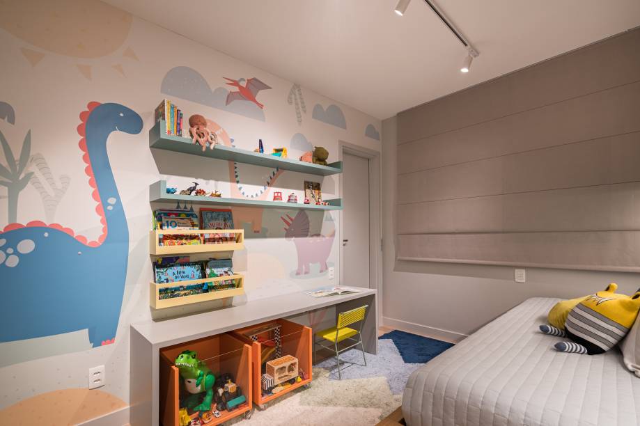 Todos os espaços foram pensados para que o filho pudesse aproveitar. A varanda, inclusive, foi projetada para ser uma brinquedoteca que o garoto pudesse usar no dia a dia, sempre à vista dos pais.