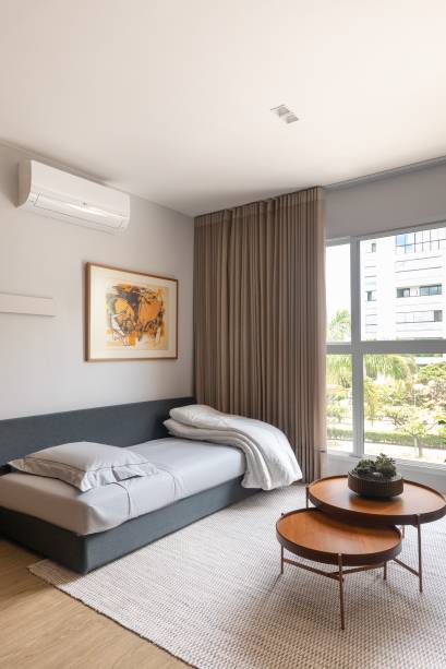 A suíte foi revertida em quarto e banheiro, de uso comum, para o morador, hóspedes e visitas.