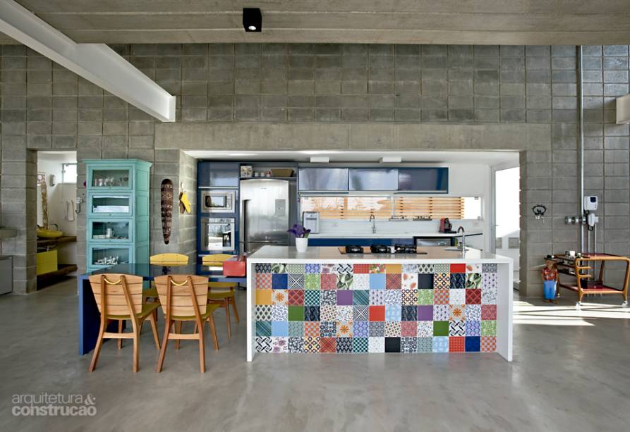 A abertura no teto favorece a circulação de ar e ainda amplia a entrada de luz natural.