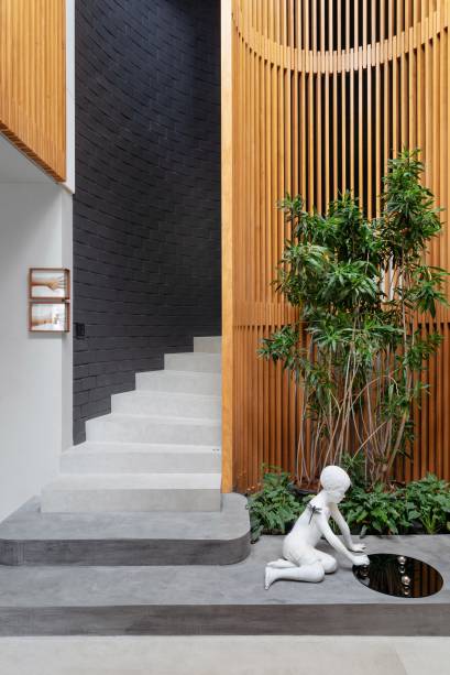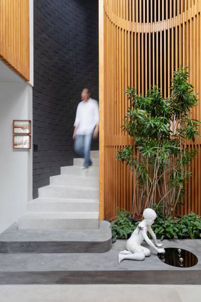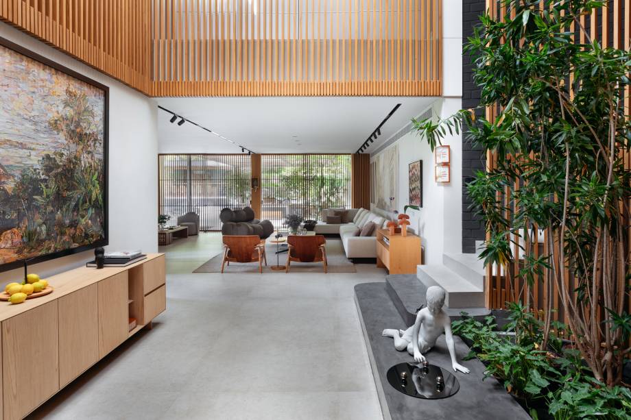Painéis de madeira lisos e ripados marcam esta casa de 600m²