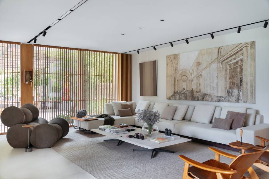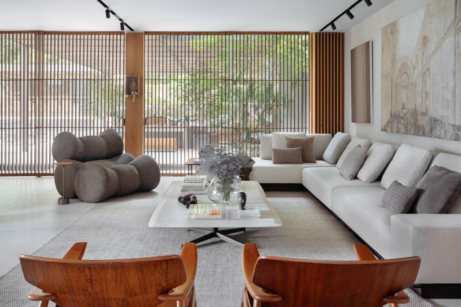 “Eles queriam um projeto que renovasse completamente a casa, em absolutamente área social, do piso aos acabamentos, passando pela iluminação e mobiliários”, conta o arquiteto Maurício.