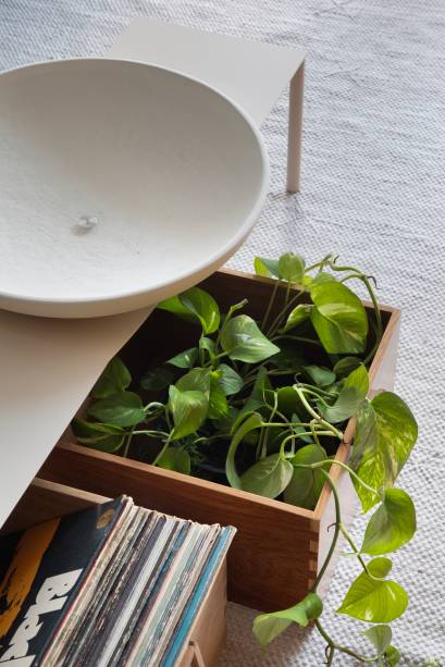 Para solucionar de forma eficiente o espaço de armazenamento de louças e utensílios, foi feito um aparador sob medida com armários e gavetas embutidas. “Para que ficasse leve, ele foi projetado solto do piso, com iluminação indireta transmitindo um clima gostoso. O local do bar foi delimitado por um nicho embutido que abriga as garrafas e taças ao lado da adega”, completa Juliana.