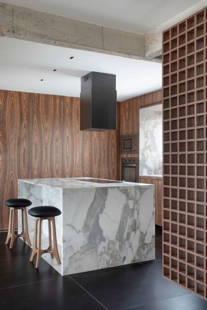 O projeto buscou então um espaço amplo onde os moradores pudessem receber confortavelmente seus amigos e, ao mesmo tempo, expor uma coleção de obras de arte, sem pesar visualmente no espaço, já que eles apreciam o estilo minimalista. A remoção do forro de gesso no teto de todo o apartamento fez o pé-direito ficar mais alto, mas também revelou algumas vigas de concreto armado, que acabaram sendo incorporadas ao décor, em estado bruto.