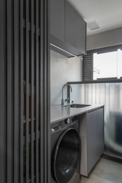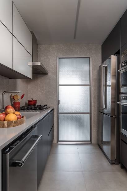 Outra modificação foi a eliminação do hall de entrada. “Criamos uma porta, cerca de 30 cm distante do elevador, gerando um espaço confortável para os clientes apenas colocarem o dedo na biometria. As pessoas não estão muito acostumadas com essa solução, mas, atualmente, com a tecnologia e a automação das residências, conseguimos eliminar esse ambiente tendo a máxima segurança”, explica o escritório.