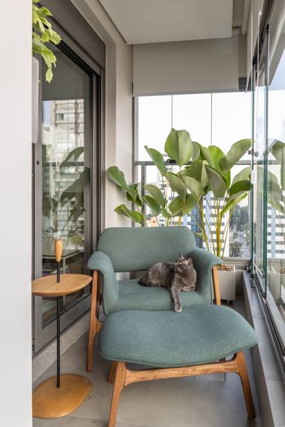 Sem nunca esquecer dos gatinhos, todos os tecidos foram pensados para que eles não conseguissem arranhar e puxar os fios. A parte do paisagismo também foi essencial, pois muitas plantas são tóxicas para os bichinhos – a escolha de todo o verde foi feita junto com a paisagista.