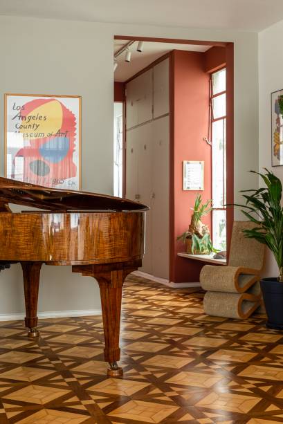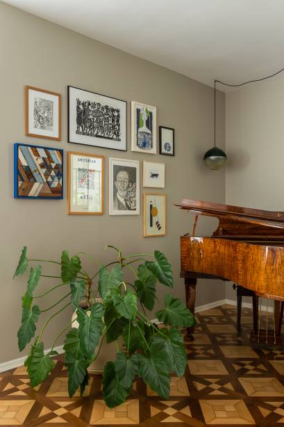 O piano da família, peça central na identidade do apartamento, ganhou um cenário pensado para se destacar dentro desse novo fluxo.