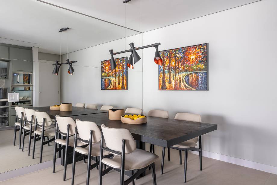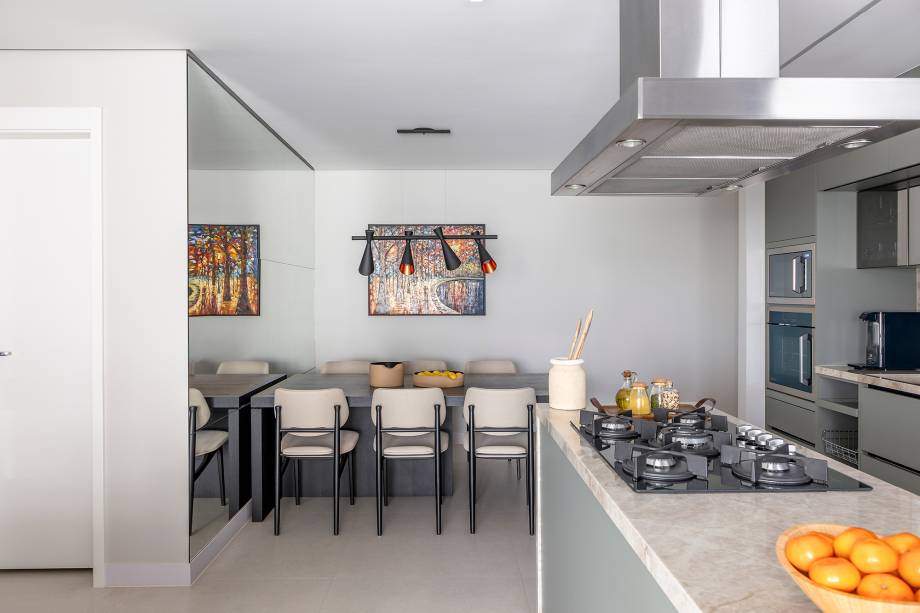 “Eles escolheram todos os detalhes junto com a gente e cada detalhe foi pensado para eles aproveitarem ao máximo o apartamento: receber os amigos, passar o final de semana, trabalhar em casa, cozinhar e fazer churrasco“, conta a profissional.