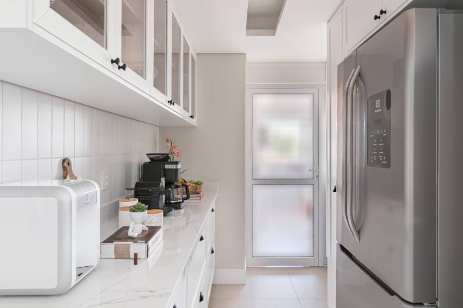 “Não é um apartamento que as visitas chegam e tem medo de tocar nas coisas. É um imóvel iluminado e com muita marcenaria para deixar com a cara dos moradores”, comenta a arquiteta. A marcenaria foi pensada 100% em cima das necessidades deles. Por isso, há a porta que fecha a área íntima mas que pode ficar aberta nos dias em que eles não queiram “atravancar” a passagem.