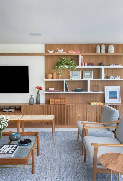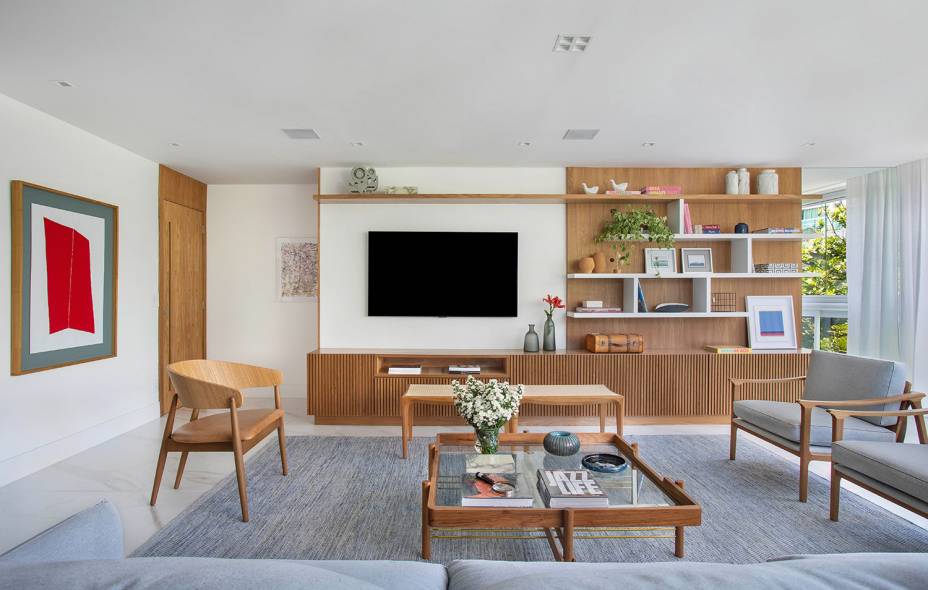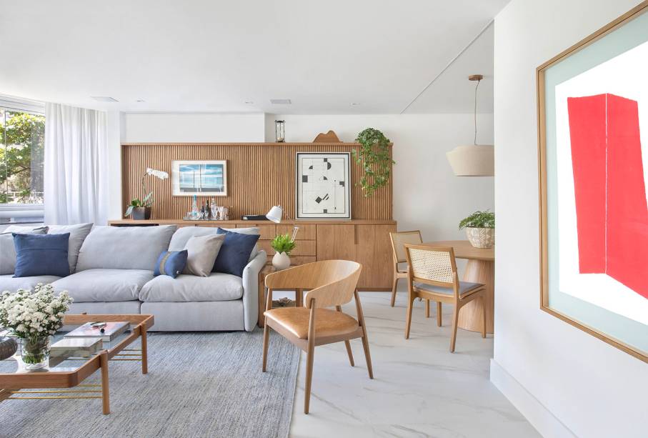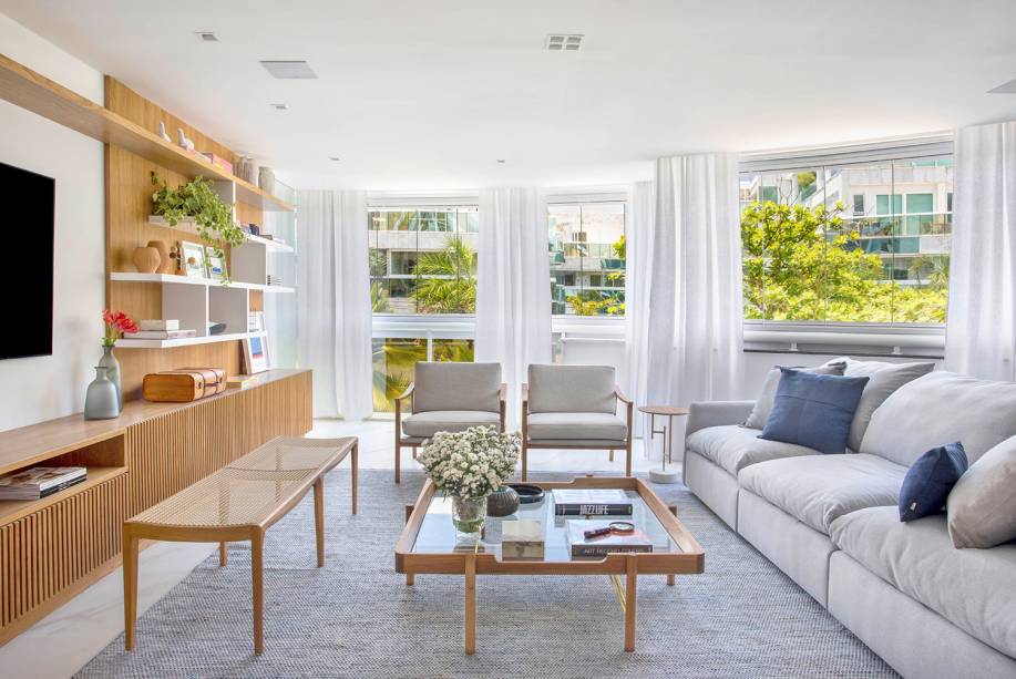 “Projetei ambientes claros, de fácil manutenção e acolhedores. Considero este projeto contemporâneo e atemporal, com alma carioca, ao mesmo tempo chique e despojado”, resume a arquiteta, que usou uma base clara na decoração, em tons neutros, pontuada com cores mais fortes em quadros, adornos e almofadas para transmitir paz, acolhimento e bem-estar para a família.