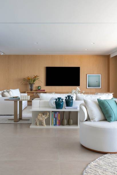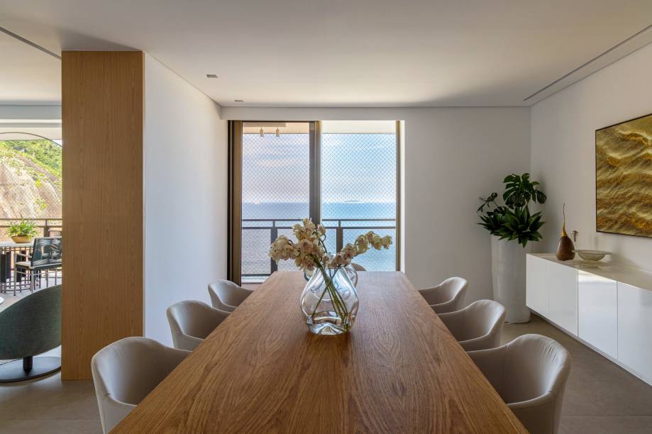 Entre as peças de design assinado, vale ressaltar a mesa de jantar Dinn (de Jader Almeida), a mesa de centro Ardan (de Larissa Diegoli) e a mesa lateral Claire (do Studio Sette), todas fornecidas pela Way.