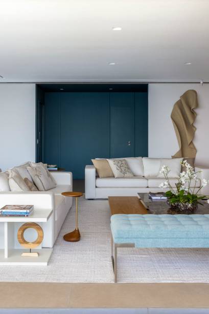 “Agora, é possível deixar totalmente livre o vão entre a área social e a varanda, debruçada sobre o mar”, ressalta Geize.