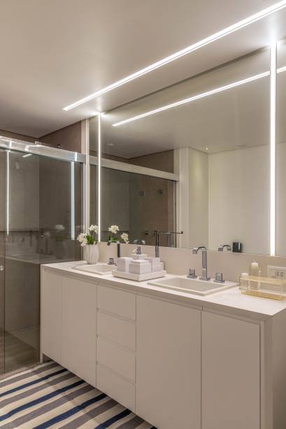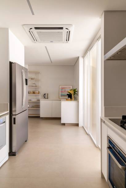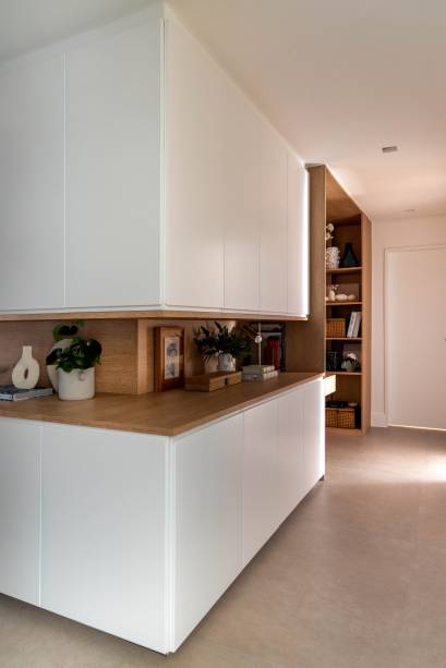 “Era importante que os dois filhos tivessem banheiro no quarto, e não apenas um, como na planta original”, informa Alessandra. Para criar o espaço da copa solicitado pelos moradores e ampliar ainda mais a cozinha, o antigo louceiro e a despensa também foram redimensionados.