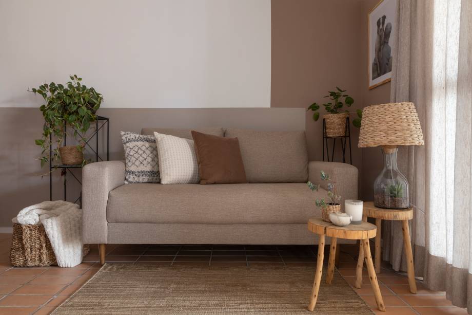 Com piso em lajota, plantas e tons terrosos, o projeto assinado pelo escritório Vinícia Brandão Arquitetura é repleto de aconchego