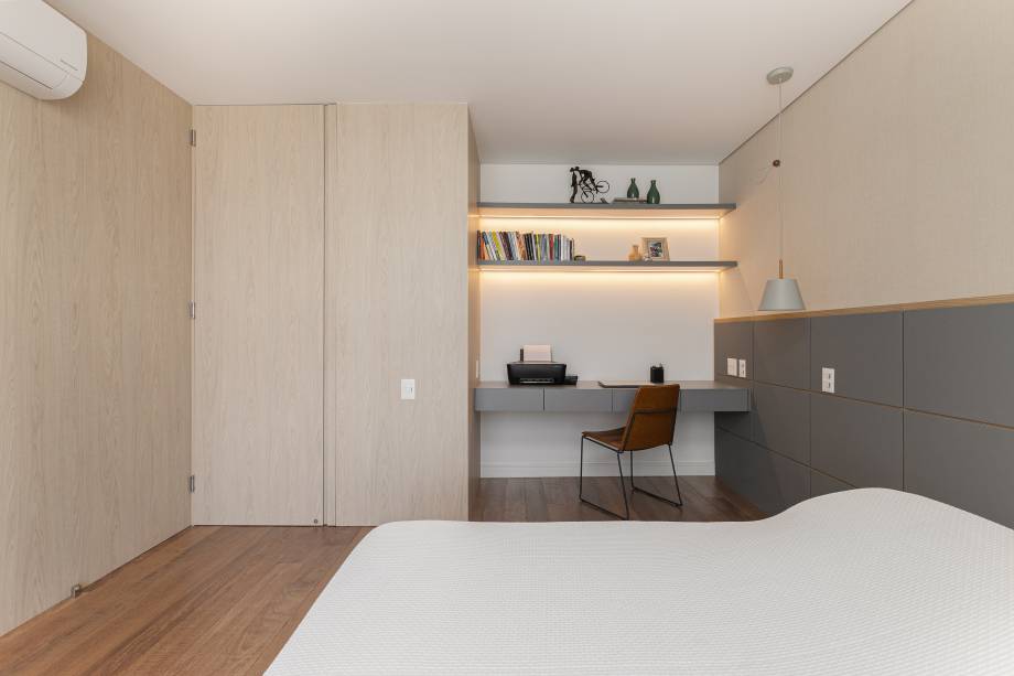 Em resposta ao desafio de reconfigurar o apartamento para atender as demandas familiares, o atelier criou duas áreas de home office, para que o casal pudesse trabalhar de maneira simultânea, sem atrapalhar um ao outro. Ampliando o espaço do closet e da suíte master, cada ambiente garantiu funcionalidade e conforto para o trabalho remoto dos clientes.