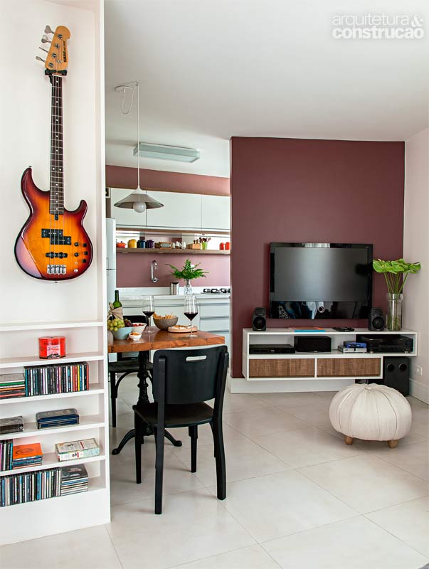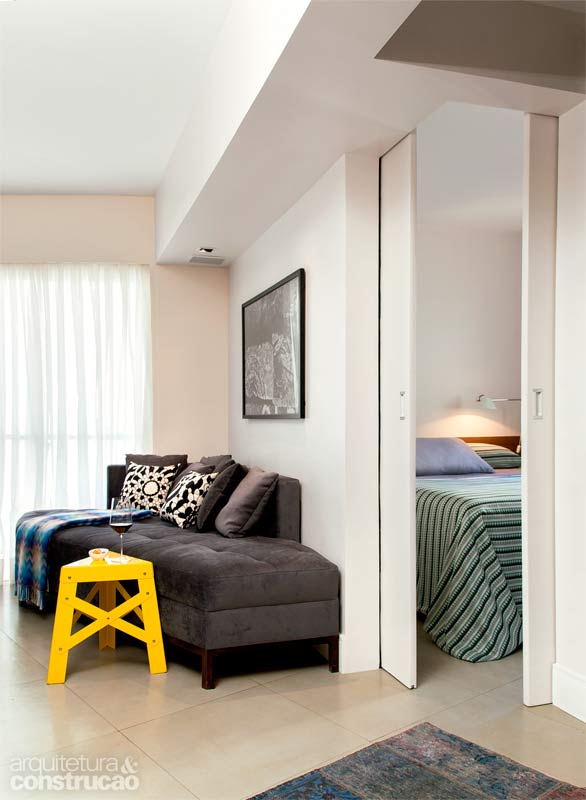 No dia 5 de abril, depois de passar pouco mais de três meses reformando seu apartamento, o administrador Marcos Iantorno resolveu fazer um teste: convidou 20 pessoas para comemorar seu aniversário. Sim, 20 pessoas brindando, circulando e se divertindo em 37 m². No fundo, Marcos queria provar até onde o projeto do arquiteto Décio Navarro tinha conseguido resolver sua principal questão: viver com mais conforto num espaço tão diminuto. “Ia chegando mais gente e eu pensava: não vai dar. Mas deu – e foi muito bom. Todos se sentiram acomodados”, conta o morador. A principal razão disso está na sala, que ganhou amplitude e um ir e vir mais fluido com a obra. “Havia muita parede, cantos angulosos e nem sequer um respiro para dispor uma mesinha de jantar”, lembra Décio. Estudando a planta no papel, o arquiteto percebeu que ganharia uma área preciosa se eliminasse o armário embutido do quarto e recuasse sua parede, cedendo 60 cm da largura do dormitório para o estar. Um quarto sem lugar para as roupas? “Por que não? Quando se trata de um imóvel tão pequeno, você vive todo o local como uma coisa só. Desapegar-se da ideia padrão de distribuição pode significar um grande lucro”, complementa. Bom, no final da história, o armário foi parar numa espécie de hall, no canto da sala de estar. “Encaixei a marcenaria num trecho roubado do banheiro da suíte, logo ao lado da entrada. Para consegui-lo, precisei mudar o chuveiro de lugar.” O quebra-cabeça por mais amplitude terminou com a abertura da cozinha, cuja parede divisória perdeu sua maior parte. Só sobrou a porção onde está a TV, estratégica para esconder a área de serviço. Toda a obra foi comandada pelo próprio morador, sócio de uma empresa de execução de reformas. “Como eu já morava aqui há 15 anos, pude avaliar a diferença entre o antes e o depois. Até a entrada de ar e da luz natural melhorou”, analisa Marcos. Ah, se os detalhes fazem a diferença, não é possível deixar de falar de acabamentos, cores e móveis. O piso único e claro de porcelanato, por exemplo, multiplica a luz. “Se usássemos madeira, a sensação arejada e de continuidade não seria a mesma”, ensina Décio. O revestimento permitiu pontuar tons escuros em uma ou outra parede. A marcenaria também foi crucial ao substituir portas de abrir por modelos de correr na suíte, recurso eficaz em ganhar centímetros. Ou ao criar estantes em regiões inesperadas, como abaixo da janela do dormitório. Até o sofá teve desenho sob medida para não comprometer a fuidez e liberar a passagem para a microvaranda de 1 m². Agora, sim, cabe uma mesinha de jantar para quatro. E também um monte de gente – quem sabe até mais de 20 amigos na festa do ano que vem.