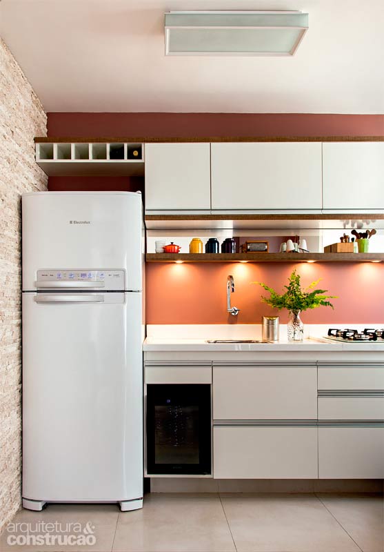 Apê de 81 m² tem roupeiro, cristaleira na cozinha e casinha de gato no banheiro