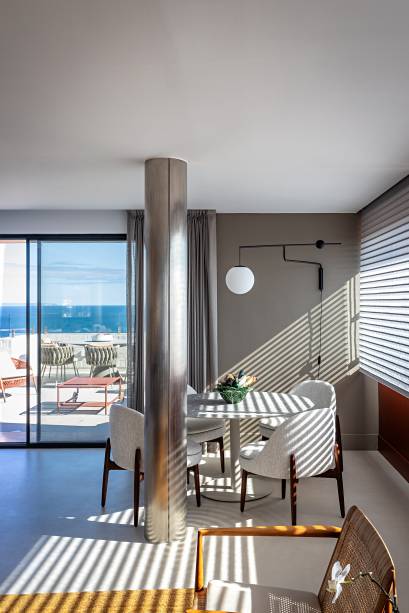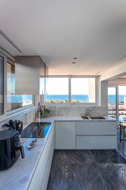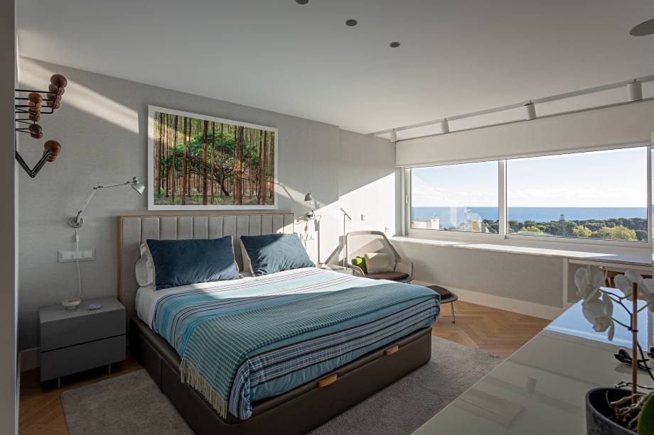 “Quase todos os projetos que fiz em Cascais foram em prédios novos, construídos nos últimos anos. Mas eu prefiro construções mais antigas. E este é um dos edifícios mais altos do quarteirão. Então, além de não ser nada devassado, ele tem uma vista incrível para o mar de todos os ambientes do apartamento”, comemora Andrea.