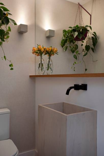Assinado pelo escritório Mar Arquitetura, o projeto integrou a varanda e apostou em materiais com diferentes texturas