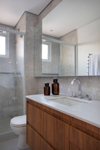 Originalmente, o apartamento contava com três quartos, sendo uma suíte. Após a reforma, a pedido do casal, o imóvel passou a ter duas suítes mais amplas, sendo a deles com um closet, que foi adicionado.