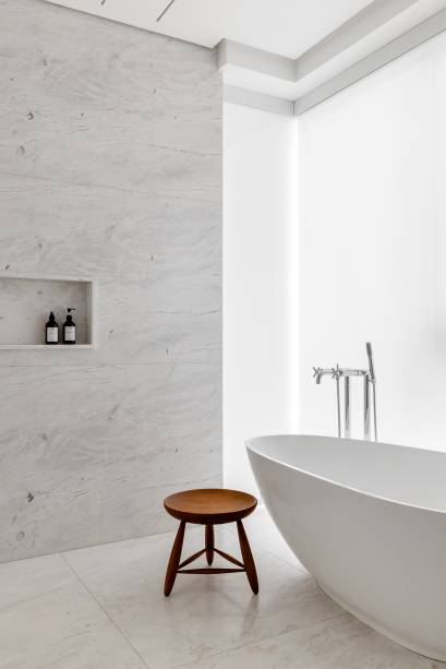 A iluminação natural é um dos grandes diferenciais do projeto. As arquitetas exploraram essa característica para criar contrastes de luz e sombra que destacam os elementos arquitetônicos e valorizam os cômodos.