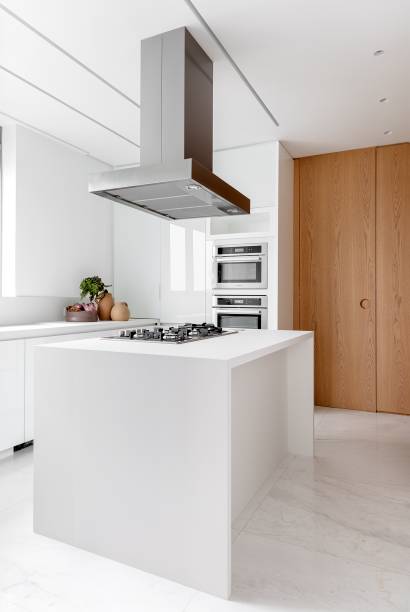 Para otimizar o dia a dia, foram implementadas diversas soluções funcionais, como gavetas com iluminação interna, portas escamoteáveis para armazenar eletrodomésticos, despensas verticais e portas basculantes automatizadas.