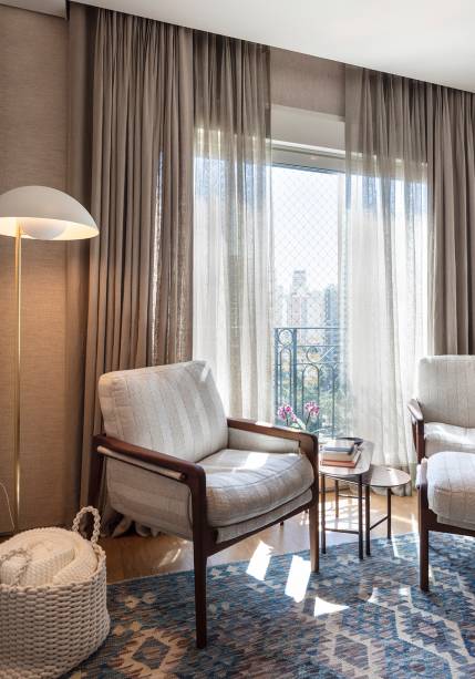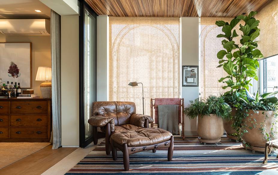 Tecidos, madeira, pedras e elegância compõem apê de 350 m² em São Paulo