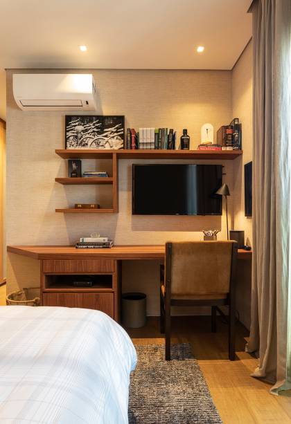 Os dois moradores deste apartamento de 350 m², em São Paulo, tinham gostos absolutamente opostos: ela com gosto mais clássico e maximalista e ele com gosto mais minimalista e contemporâneo. Conciliar essas duas estéticas foi o desafio do profissional Felipe de Almeida.