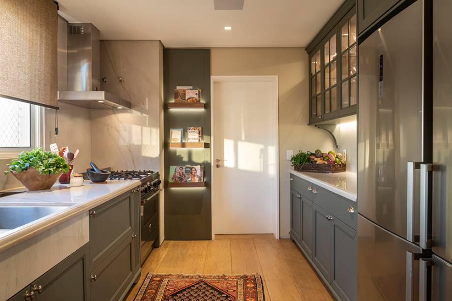 O imóvel inicialmente estava bastante desatualizado, então o projeto investiu em revestimentos, mobiliário, marcenaria e design, para criar uma atmosfera que fosse atemporal e funcional. Além da renovação dos interiores, o objetivo era oferecer um apartamento para acomodar toda a família de forma confortável.