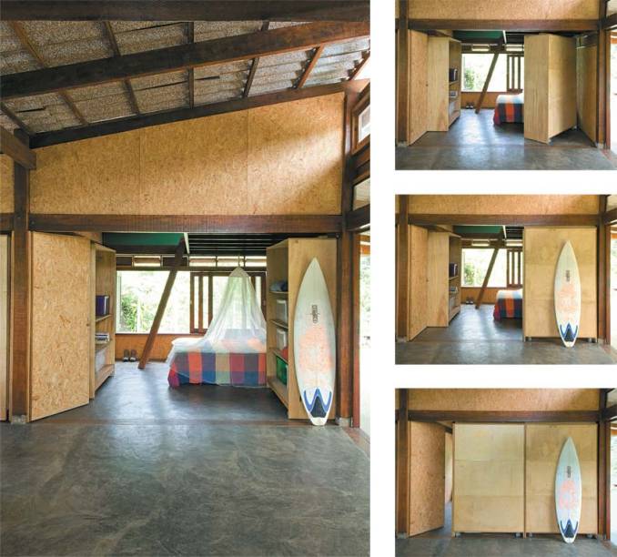 Economia Era essencial para viabilizar a casa de praia dos irmãos Fernando e Alexandre Freire na praia do Bonete, um lugarejo isolado de Ilhabela, SP. Por isso, eles chamaram o amigo e arquiteto Pedro Saito (então iniciante) para ajudá-los a trocar a hospedagem em pousadas por algo definitivo. Mal tinham o dinheiro para começar, motivo pelo qual planejaram uma empreitada de longo prazo. “Em três anos de obra gastamos R$ 150 mil”, conta Fernando. Surfistas amadores habituados a estadas sem luxos, eles não tiveram dificuldade em optar por uma solução de grande simplicidade.