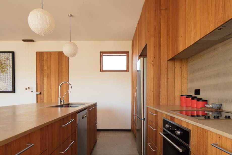 Além do formato, o que mais chama a atenção no projeto desta casa em Beaufort Victoria, na Austrália, é o fato de ela ser sustentável e ter sido feita com materiais recicláveis. Chamada de The Recyclable House, a construção foi projetada e construída por Quentin Irvine, diretor da empresa Inquire Invent Pty Ltd. A inspiração para o formato veio dos icônicos galpões australianos, feitos de lã de aço galvanizado. A impressionante fachada externa exige baixa manutenção e é durável.