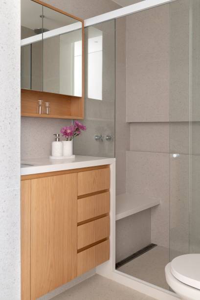 O projeto, do escritório Maia Romeiro Arquitetura, equilibrou os tons mais frios com uso da madeira, em especial o carvalho americano