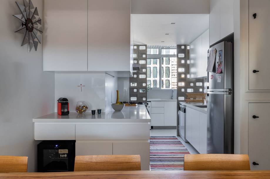 O imóvel, de 150 m², foi comprado quase na sua forma original, já que os moradores anteriores só tinham aberto um quarto para a sala. “Mudei a planta, que voltou a ter quatro quartos, pois precisávamos de um escritório/quarto de hóspedes, um quarto de casal e dois para os filhos. Sonhamos com uma família maior”, conta o arquiteto.