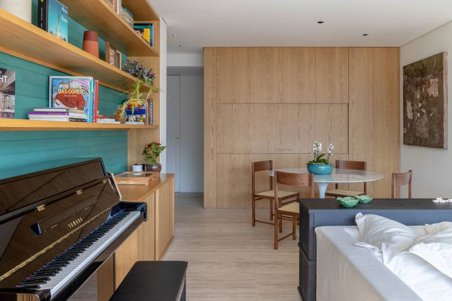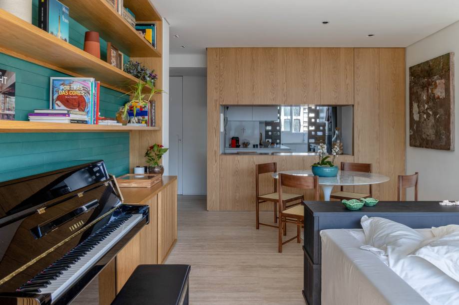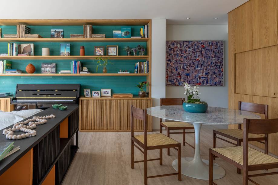 “Amamos música, tocamos juntos. Gostamos de escutar discos da minha. Literatura clássica, filosofia e leituras espirituais fazem parte do também nosso dia-a-dia. A cozinha com a possibilidade de abertura para a sala proporciona mais frequência nessas atividades, pois podemos ouvir música, contemplar a vista e conversar muito enquanto alguém cozinha”, explica Joaquim.