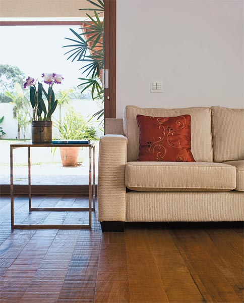 Para proteger a madeira, os profissionais indicam resina à base de água (do tipo Bona, Synteko Vitta, Skania). A opção prescinde do toque aveludado da cera, mas em compensação é inodora e não mancha em contato com água. Além disso, dispensa a enceradeira mensalmente. A versão fosca é a que menos altera o aspecto natural da madeira. E não se esqueça: “Pisos com sulcos fundos não são práticos onde vivem crianças e cães”, diz Elias.